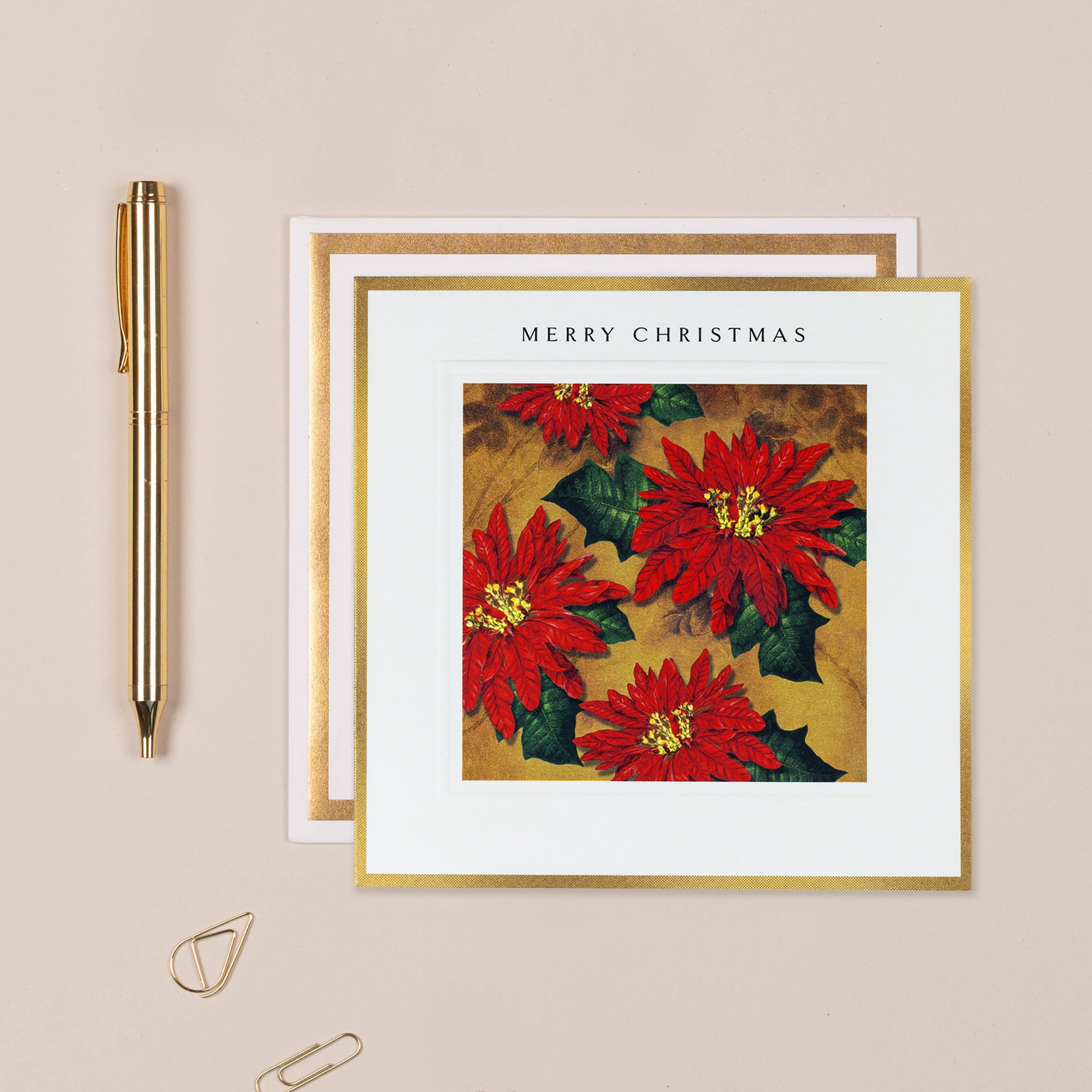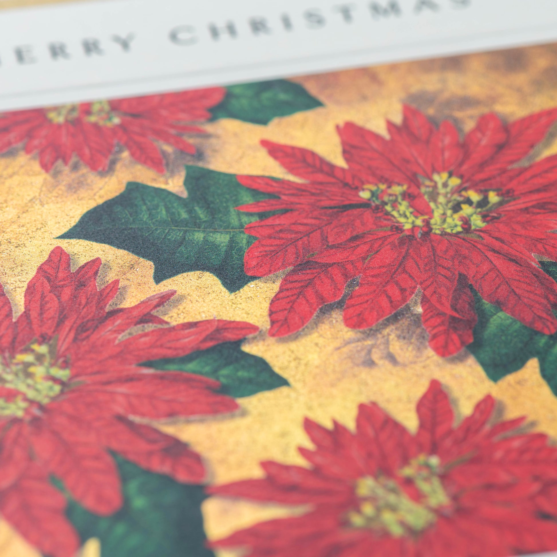 Our Poinsettia Christmas Card features foil detailing, embossed borders, gold foil edging and a subtle elegant shimmer.